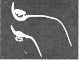 Рис. 12.2. Реакція рослини на гравітаційну силу: позитивний гравітропізм кореня та негативний — паростка.