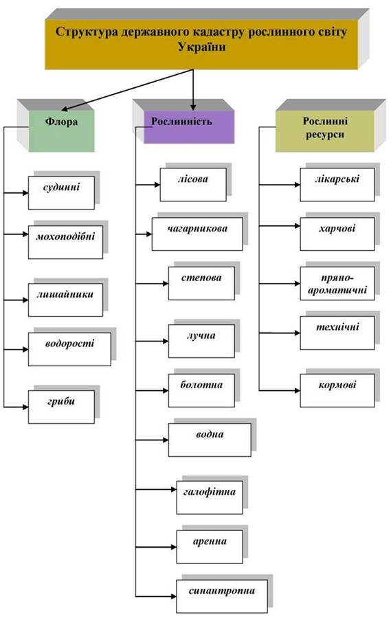 За ініціативи Міністерства екології та природних ресурсів України у 2000 р. започатковане створення Державного кадастру рослинного світу країни, який би був науково-обґрунтованим базисом ефективної охорони і захисту видового різноманіття, керованого і регульованого використання ресурсів різних груп корисних рослин: харчових, лікарських, технічних тощо. Створення Кадастру проводиться відповідно до Закону України '"Про рослинний світ».