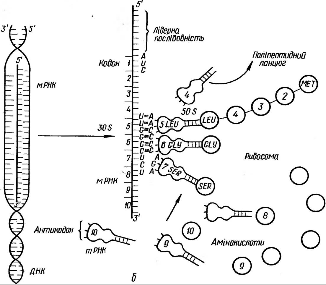 Рис. 151. Схема синтезу білку