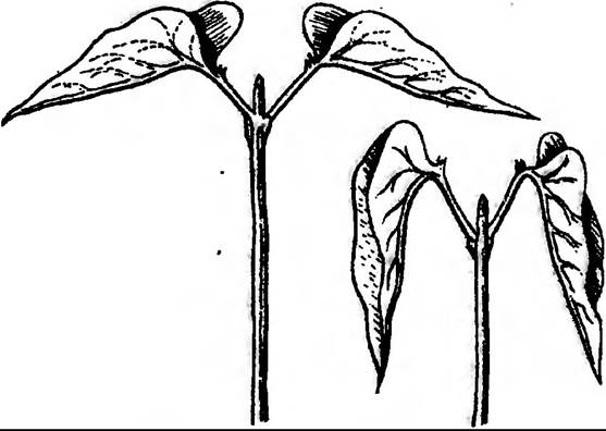 Рис 206. Ритмічні добові рухи положення листків Phaseolus multiflorus вдень (ліворуч) і вночі (праворуч)