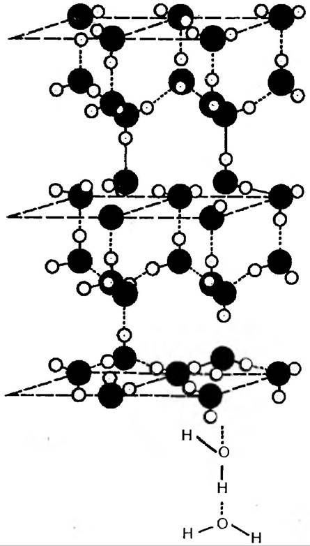 Квазікристалічна (квазі — уявна, не справжня) структура води є головною ознакою, за якою її відрізняють від інших рідин. Структурні особливості води як в твердому (рис. 23), так і в рідкому (рис. 24) станах визначають унікальні властивості її.
