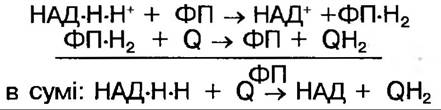 Майже всі флавопротеїни (ФП) мають в своєму складі метали (Fe, Сu, Мо, Мn). Прикладом дегідрогенази, до складу якої входить ФАД є сукцинатдегідрогеназа. Флавопротеїни переносять водень від НАД×Н2 (зрідка від НАДФ×Н2) ДО коферменту Q, при цьому ФМН та ФАД як проміжні акцептори приймають обидва протони та обидва електрони: