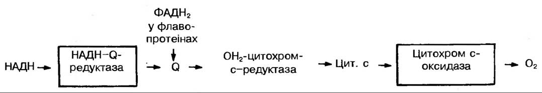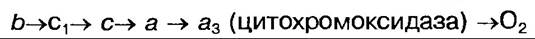 Рис. 87. Послідовність транспортування електронів у дихальному ланцюгу