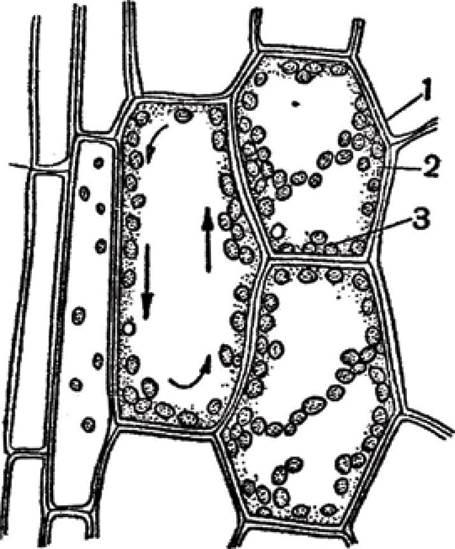 3 - хлоропласти (стрілками показано напрямок руху цитоплазми)