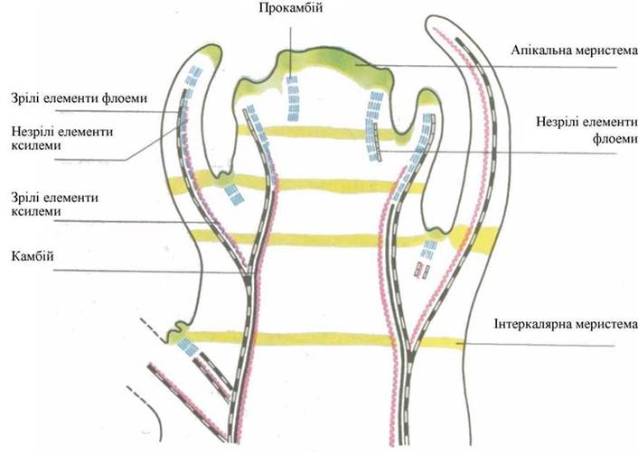 1 - закладка примордія; 2 - пальцеподібний примордій; 3 - примордій з маргінальною меристемою.