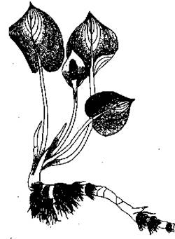 Образки болотні (Callapalustris L.). Рослина до 20-30 см заввишки, з довгим і товстим членистим кореневищем (рис. 208). Листки довгочерешкові, серцеподібні, загострені, блискучі. Квітконоси за довжиною майже дорівнюють листку. Покривало плоске, із загостреною верхівкою, однобічне, під час цвітіння зсередини білосніжне. Квітки двостатеві, лише на верхівці початку можуть бути одностатеві, без оцвітини, дрібні, Тичинок шість, зав’язь одногнізда, приймочка сидяча. Цвіте в травні-червні. Плід - червона ягода, заповнена слизом, що оточує насіння.