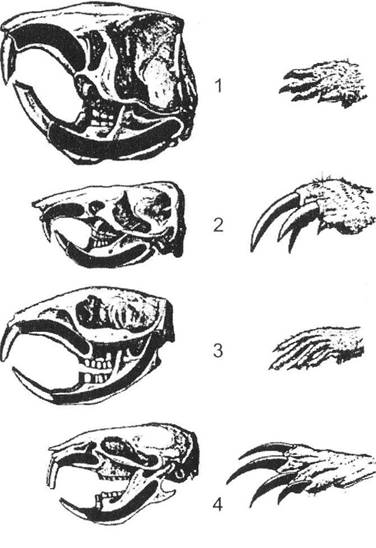 Рис. 11.11. Компенсація функцій органів риття в гризунів (за М.М. Воронцовим, 1999):
