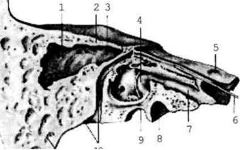 5 - перпендикулярна пластинка; 6 - решітчастий лабіринт;