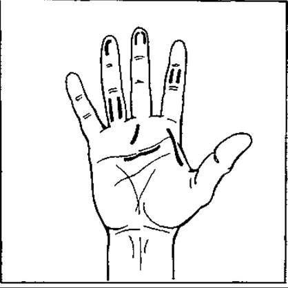 На долонній поверхні до кожного пальця, крім великого, ідуть два сухожилки: поверхневого і глибокого згинача. Великий палець має один сухожилок згинача (довгий згинач І пальця).
