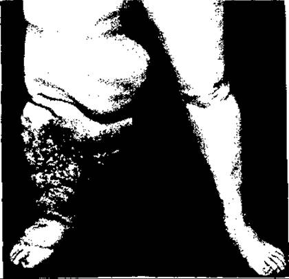 Мал. 111. Слоновість ноги з дерматитом, що розвинулась унаслідок захворювання на філяріоз