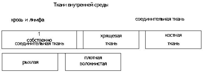 Ткани внутренней среды, или Соединительные ткани, отличаются значительным развитием межклеточного вещества. Они подразделяются на ткани с преобладанием трофических, опорных или защитных функций.