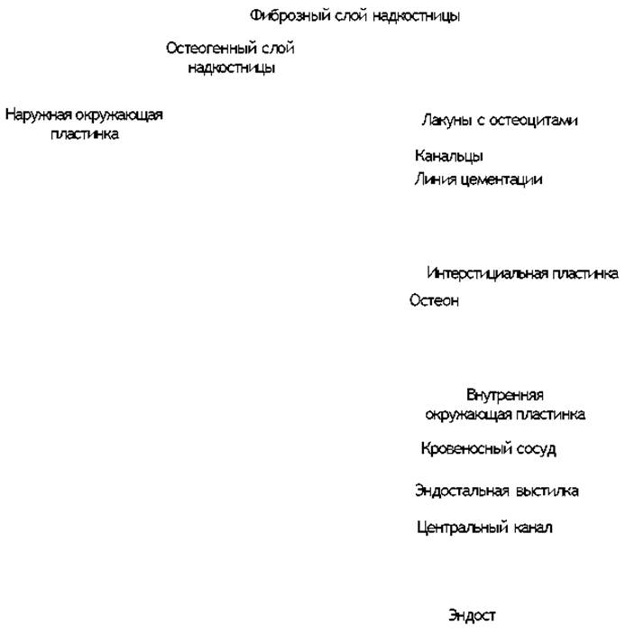 Рис. 7. Микроскопическое строение остеонированной кости (по Хэму)