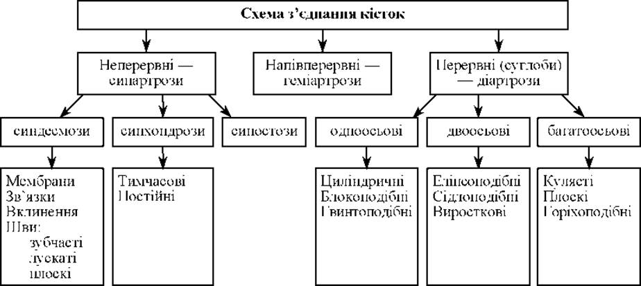 Таким чином, залежно від розвитку, будови і функції всі з’ єднання кісток можна поділити на три групи (табл. 5):