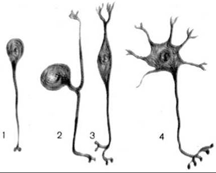Морфологічна характеристика нейрона визначається передусім кількістю відростків, що відходять від нього. За цією ознакою розрізняють нейрони мультиполярні (багатополюсні) — з великою кількістю відростків, біполярні (двополюсні) — з двома відростками, псевдоуніполярні (однополюсні) — з одним відростком. Уніполярні й біполярні клітини мають круглу або овальну форму, а мультиполярні — багатокутну (мал. 230).