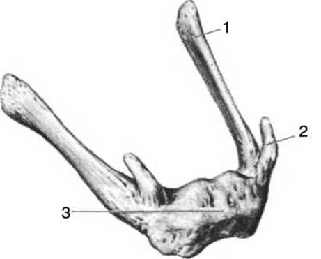 1 — великий ріг; 2 — малий ріг; 3 — тіло