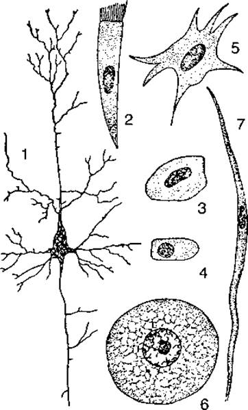 1 — нервова; 2, 3, 4 — епітеліальні; 5 — сполучнотканинна; 6 — яйцева; 7 — м’язова