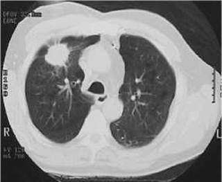 Мал. 123. Периферійний рак правої легені на комп’ютерній томограмі.