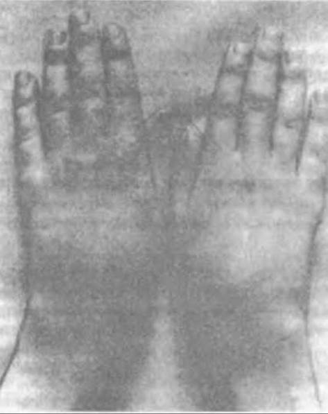Мал. 322. Бруцельозні бурсити дорсальної поверхні променево-зап’ясткових суглобів.