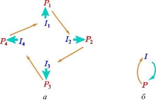 Рисунок 38 - Схемы гиперцикла: а - сложного; б - простейшего