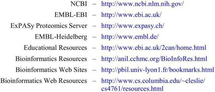 Сюда же входят небольшие базы данных, такие как базы данных структурных мотивов белков Prosite (http://prosite.expasy.org/) и Blocks (http://blocks.fhcrc.org/), базы данных факторов транскрипции и специализированные базы данных некоторых патогенов.