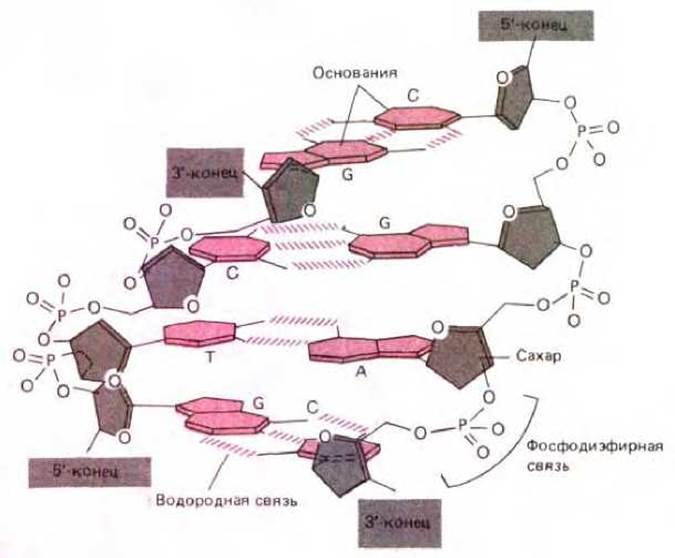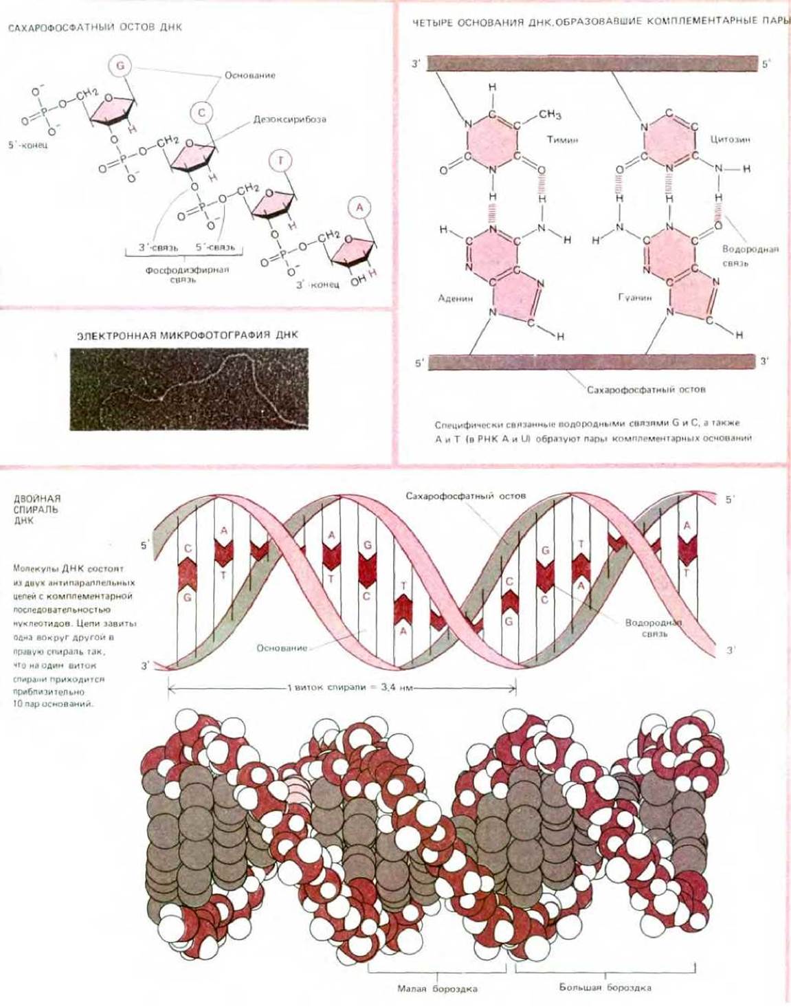 К концу XIX столетия биологи обнаружили, что хромосомы (которые становятся различимыми в ядре в начале деления) являются носителями наследственной информации. Но данные о том, что веществом, из которого состоят гены, является дезоксирибонуклеиновая кислота (ДНК) хромосом, были получены значительно позже при изучении бактерий. В 1944 г. было установлено, что очищенная ДНК одного бактериального штамма способна передавать наследственные свойства этого штамма другому штамму, несколько отличному от первого. Это открытие оказалось слишком неожиданным и не получило широкого признания до начала 50-х годов, так как считалось, что лишь Белки обладают достаточно сложной конформацией, чтобы быть носителями заключенной в генах информации. Сегодня представление о том, что именно ДНК является носителем генетической информации (хранящейся в ее длинных полинуклеотидных цепях), столь прочно вошло в биологическое мышление, что порой трудно осознать, какой огромный пробел в наших знаниях заполнило это представление.