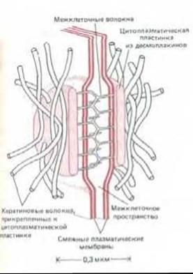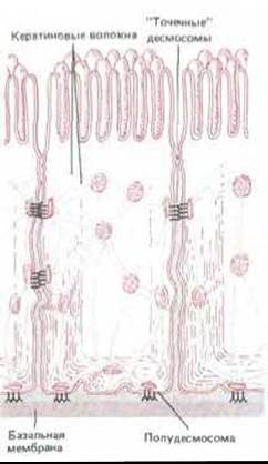 И десмосомы, и полудесмосомы действуют как заклепки, распределяя сжимающие и растягивающие усилия по эпителию и подлежащей соединительной ткани.