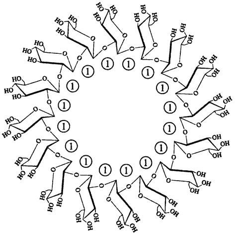 Рис. 274. Осморегулируемый периплазматический 16-мерный глюкан Rhizobiaceae. Цифрой 1 обозначены β-1,2-гликозидные связи.