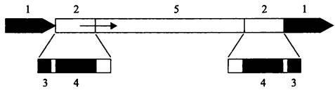 DR (сокр. англ. direct repeat). В хромосоме Mycobacterium bovis штамм BCG содержится высококонсервативный локус, состоящий из 49 прямых повторов размером 36 п. н., разделенных уникальными последовательностями, каждая длиной 35-41 п. н. Этот кластер служит «горячей точкой» для интеграции инсерционной последовательности IS6110 (см. раздел 16.3.2.1).