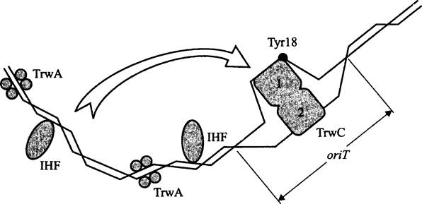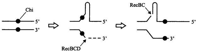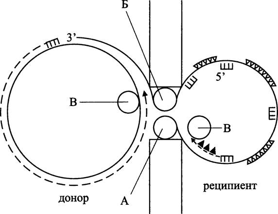Транспортной формой ДНК при конъюгации также служит одиночная цепь, но она превращается в дуплекс, который может быть защищен системой антирестрикции (см. выше).