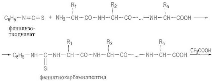 Обрабатывая пептид в щелочной среде фенилизотиоцианатом, его превращают в фенилтиокарбамил-производное: