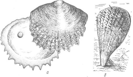 а — перлова скойка Pinctada margaritifera; б — Pinna sp.